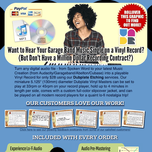 Audio to Dubplate Vinyl Records Landing Page