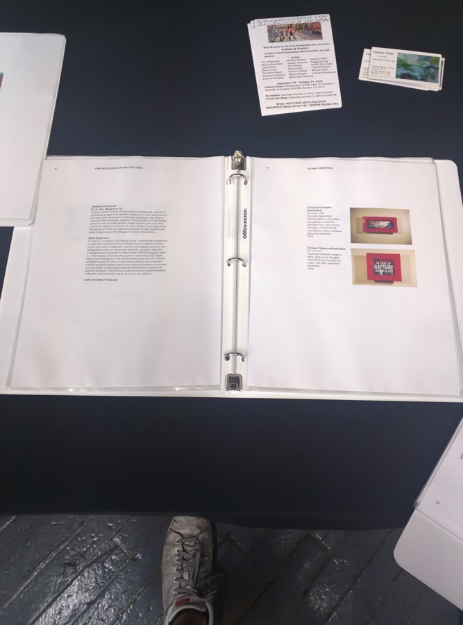 A series of multimedia installations to deal just about every emergency one might encounter in your life. Created and made by artist Andrew Davidson, this collection is perpetually growing, with new pieces being added to the roster as inspiration strikes.