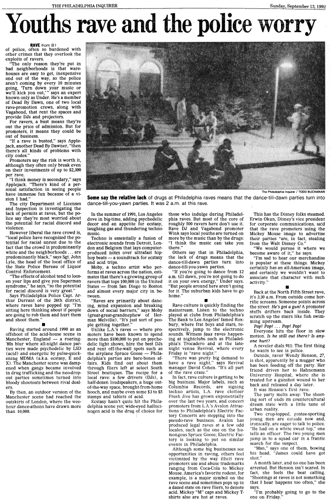 - Article includes an interview with me and other early rave promoters from Philly.