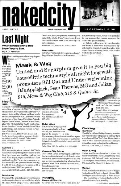 - Philadelphia Citypaper mentions my (semi-) annual New Years Eve event at the Mask & Wig.