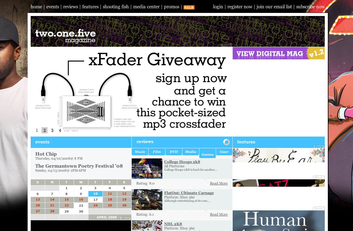Two One Five Magazine Issue 4 featured the X-Fader in a spread of 'The Digital DJ' as well as ran a promotion on their website to give away a free X-Fader to a reader.